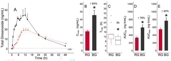 APA StyleYoo, S., Park, B.-I., Kim, D.-h., Lee, S., Lee, S.-h., Shim, W.-S., Seo, Y. K., Kang, K., Lee, K.-T., Yim, S.-V., Soung, D. Y., & Kim, B.-H. (2021). Ginsenoside Absorption Rate and Extent Enhancement of Black Ginseng (CJ EnerG) over Red Ginseng in Healthy Adults. Pharmaceutics, 13(4), 487. https://doi.org/10.3390/pharmaceutics13040487