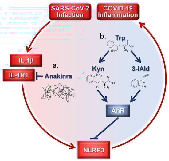- Van den Berg, D.F.; Te Velde, A.A. Severe COVID-19: NLRP3 Inflammasome Dysregulated. Front Immunol. 2020, 11, 1580. [Google Scholar] [CrossRef] [PubMed]