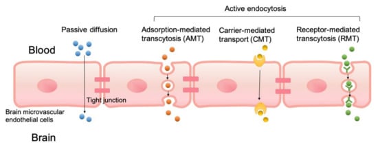 - Hervé, F.; Ghinea, N.; Scherrmann, J.M. CNS delivery via adsorptive transcytosis. AAPS J. 2008, 10, 455–472. [Google Scholar] [CrossRef]