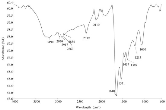 Fourier-transform infrared (FTIR) spectrum of Eh-AgNPs.