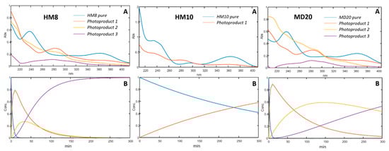 - De Luca, M.; Tauler, R.; Ioele, G.; Ragno, G. Study of photodegradation kinetics of melatonin by multivariate curve resolution (MCR) with estimation of feasible band boundaries. Drug Test. Anal. 2013, 5, 96–102. [Google Scholar] [CrossRef] [PubMed]