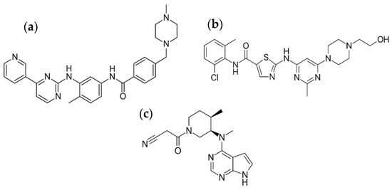 Chemical structure of (a) imatinib, (b) dasatinib and (c) tofacitinib (as free base).