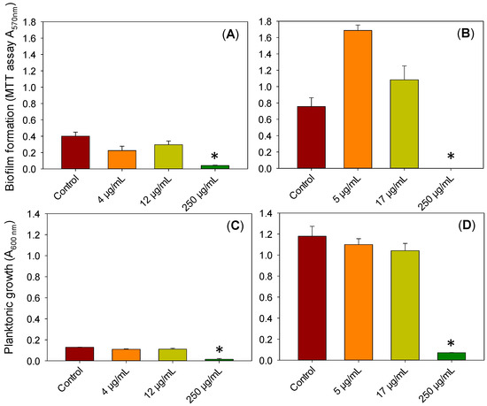 2.12. Antibiofilm Properties