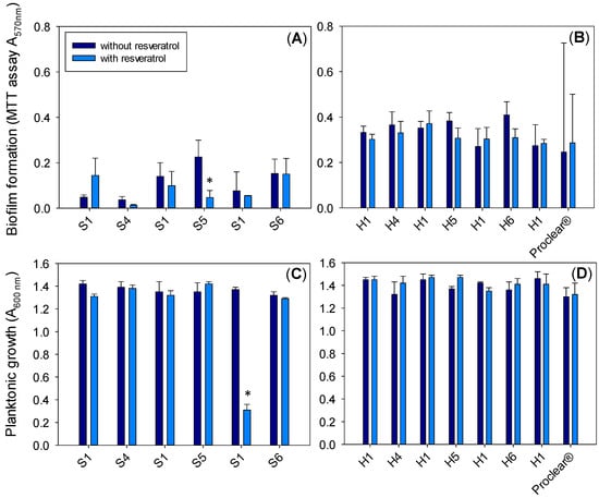 - Paulo, L.; Ferreira, S.; Gallardo, E.; Queiroz, J.A.; Domingues, F. Antimicrobial activity and effects of resveratrol on human pathogenic bacteria. World J. Microb. Biotechnol. 2010, 26, 1533–1538. [Google Scholar] [CrossRef]