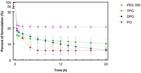 - Zhang, Y.; Lane, M.E.; Moore, D.J. An Investigation of the Influence of PEG 400 and PEG-6-Caprylic/Capric Glycerides on Dermal Delivery of Niacinamide. Polymers 2020, 12, 2907. [Google Scholar] [CrossRef] [PubMed]