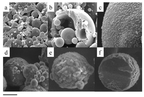 Particularly, scanning electron microscopy (SEM) is useful to investigate the shape, surface, and size distribution of dry microparticles [100], and, more importantly, it can allow the visualization of the outer and inner structure of sectioned particles, therefore obtaining information about the organization of the components of the particle and verifying if the particle is a “sphere” or a “capsule” (see Figure 3).