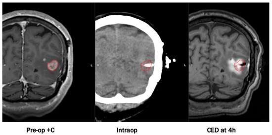 - Van Putten, E.H.P.; Wembacher-Schröder, E.; Smits, M.; Dirven, C.M.F. Magnetic Resonance Imaging–Based Assessment of Gadolinium-Conjugated Diethylenetriamine Penta-Acetic Acid Test-Infusion in Detecting Dysfunction of Convection-Enhanced Delivery Catheters. World Neurosurg. 2016, 89, 272–279. [Google Scholar] [CrossRef]