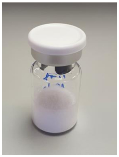 The applied freeze-drying process resulted in a stable cake structure (Figure 1) that can be easily dispersed into nanocrystals without the need to add cryoprotectants to the formulation. The observed increase in crystal size from 144.8 nm to 269.9 nm after freeze drying could be attributed to the slight agglomeration of nanocrystals during the freeze-drying process. This change is acceptable because the resulting particle size was still in the target size range for which increased skin penetration was observed [12,24].