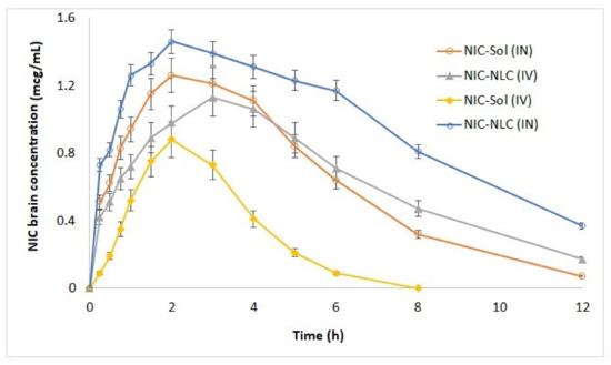 Brain and plasma pharmacokinetic parameters were subjected to statistical post hoc one-way analysis of variance ANOVA test (Tukey mode) at p-value > 0.05 (IBM-SPSS, Inc., Chicago, IL, USA).