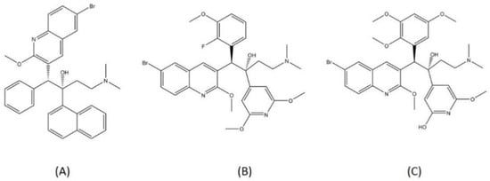 Structure of (A) bedaquiline, (B) TBAJ-587, and (C) TBAJ-876.