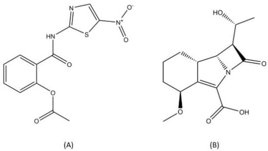 Structure of (A) nitazoxanide and (B) sanfetrinem.