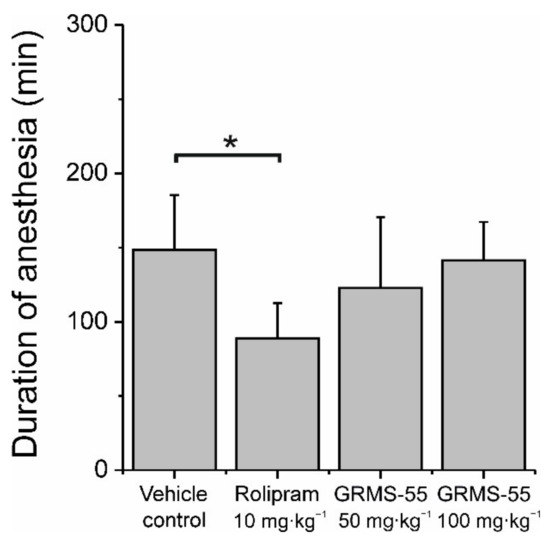 - Robichaud, A.; Stamatiou, P.B.; Jin, S.-L.C.; Lachance, N.; MacDonald, D.; Laliberté, F.; Liu, S.; Huang, Z.; Conti, M.; Chan, C.-C. Deletion of Phosphodiesterase 4D in Mice Shortens Α2-Adrenoceptor-Mediated Anesthesia, a Behavioral Correlate of Emesis. J. Clin. Investig. 2002, 110, 1045–1052. [Google Scholar] [CrossRef]