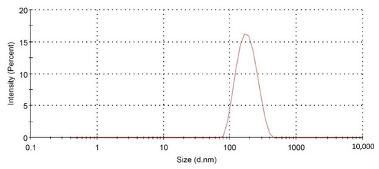 Following the constraint previously set to particle size, the optimized levels of the formulation variables were anticipated with overall desirability of 0.981. The predicted levels were 1:3.977 for cholesterol/span ratio, 0.435 mM for bile salt concentration, and 7.052% w/w for zein concentration. The optimized formulation was prepared and evaluated for characteristics and biological activity in cancer cells. The percentage error (1.818%) between the predicted (155.13 nm) and observed particle sizes (157.27 nm, Figure 3) was relatively small, confirming the successfulness and validity of the optimization process.