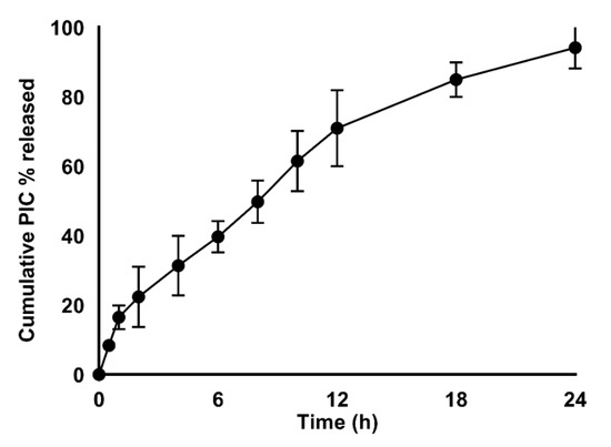 The in vitro dissolution of PIC from the BZ was studied. The drug release profile is illustrated in Figure 4.