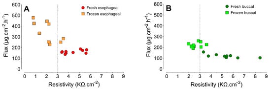 de Araújo, J.S.M.; Volpato, M.C.; Muniz, B.V.; Xavier, G.G.A.; Martinelli, C.C.M.; Lopez, R.F.V.; Groppo, F.C.; Franz-Montan, M. Resistivity Technique for the Evaluation of the Integrity of Buccal and Esophageal Epithelium Mucosa for In Vitro Permeation Studies: Swine Buccal and Esophageal Mucosa Barrier Models. Pharmaceutics 2021, 13, 643. https://doi.org/10.3390/pharmaceutics13050643