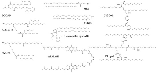 Ionizable lipids used in pDNA/mRNA vaccines.