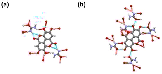 (a) Hydrogen bonds in UE between urea amide group and ellagic acid carbonyl group. (b) Hydrogen bonds formed by the phenol group in UE.