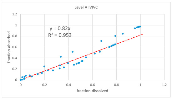 Level-A IVIVC was constructed with dissolved and absorbed fractions up to 3.5 h: Once the level-A correlation was obtained, predicted fractions absorbed from fractions dissolved and the level-A equation was convoluted again using the inverse Loo–Riegelman procedure [10] to get the predicted plasma levels.
