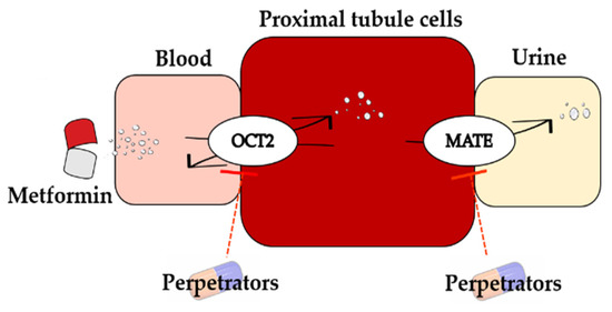 - Tzvetkov, M.V.; Vormfelde, S.V.; Balen, D.; Meineke, I.; Schmidt, T.; Sehrt, D.; Sabolic, I.; Koepsell, H.; Brockmoller, J. The effects of genetic polymorphisms in the organic cation transporters OCT1, OCT2, and OCT3 on the renal clearance of metformin. Clin. Pharmacol. Ther. 2009, 86, 299–306. [Google Scholar] [CrossRef]