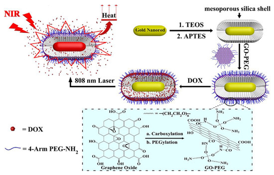 Preparation of GNRs/SiO2/GO-PEG nanoparticles. Reproduced from [36] with permission, copyright 2019, Elsevier.
