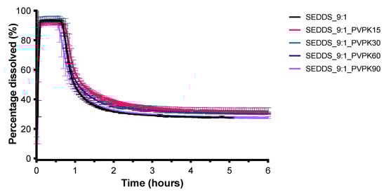 Figure 6). This polymer-induced delay in precipitation has previously been demonstrated in various SEDDS formulations [