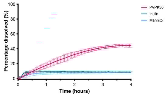 Figure 5), even though PVP K30 was found to be the best carrier for the SD formulation (