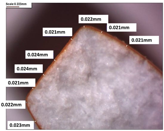 Achievement of around 20 µm film thickness (on caps, edges and around bands) in each batch was also confirmed by stereoscopic microscopy (Opta-Tech, Warsaw, Poland). An example microscopic photo of coated MT cross-section is presented in Figure 3.