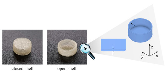 Based on the formulation and processing parameters tuned, cores with no top and bottom layers were printed according to the relevant CAD file (see Figure 1a).