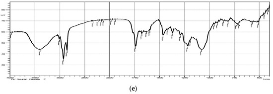 The IR chart of DCN (Figure 4c) showed characteristic bands at 3329 cm−1 (corresponding to the stretching of –OH stretch), 3070 cm−1 (corresponding to the stretching of aromatic C–H), 2939 cm−1 (corresponding to the stretching of aliphatic C–H), 1770 cm−1 (corresponding to the ester C=O), 1678 cm−1 (corresponding to the stretching of C=O group of COOH), 1593.20 cm−1 (corresponding to the stretching of aromatic C=C), 1450.47 cm−1 (corresponding to the stretching of COO−), 1026 cm−1 (corresponding to the stretching of ester C–O), 744.52 cm−1 and 705.96 cm−1 (corresponding to the m-substituted benzene and benzene, respectively) [43].