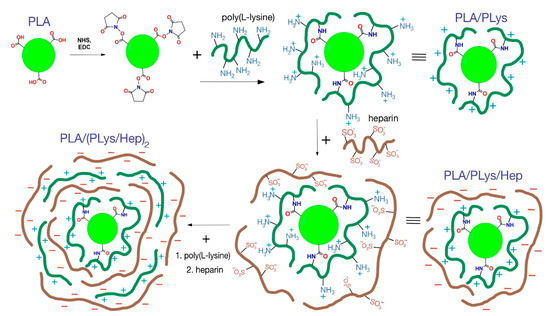 Modification of micro-and nanoparticles with PLys and Hep. Similar to the previously published protocol, the micro- and nanoparticles were modified with PLys and Hep [19]. The scheme of particle step-by-step modification is presented in Figure 1.