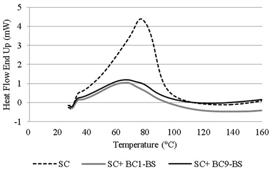 DSC curves of the SC obtained from porcine skin treated with BC1-BS and BC9-BS at a concentration below their CMC.