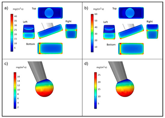 Figure 7a): 9.6, right face: 8.8 and finally top face: 2.5 mg/(m
