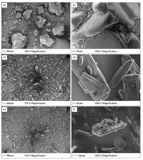 Figure 9c–f). The particles did not have any visible open pores, as judged from SEM images, and the particles were considered to be dense. In the case of porous particles, the single particle technique could potentially be used to study the effect of particle porosity on the IDR. For each compound there was also a variation in the main particle dimensions (