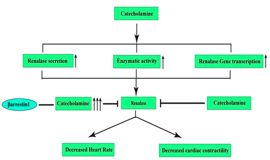 - Li, G.; Xu, J.; Wang, P.; Velazquez, H.; Li, Y.; Wu, Y.; Desir, G. V Catecholamines regulate the activity, secretion, and synthesis of renalase. Circulation 2008, 117, 1277. [Google Scholar] [CrossRef] [PubMed]