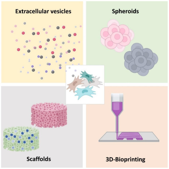 Later on, more reports unveiled a potential pluripotency where these cells can transdifferentiate into cells of other lineages, endodermal (e.g., muscle, lung, and gut cells, etc.), and ectodermal (e.g., epithelial, and neural cells) [5]. Another interesting feature of MSCs is their homing ability, meaning that they can migrate into injured tissues where they can contribute to the physiological processes in ways more than one. (i) They can differentiate into various local cell types at the injured sites, (ii) they can secrete chemokines, cytokines, and growth factors that help in tissue regeneration, (iii) they can produce non-classical secretory vesicles, known as the extracellular vesicles (EVs), (iv) they can effectively communicate with stressed/injured somatic cells and transfer their cytoplasmic elements and organelles (as mitochondria).