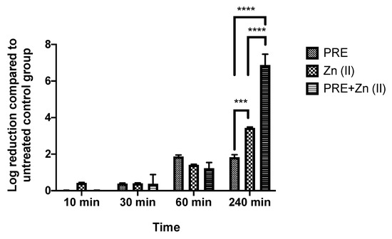 3.2. Determination of MIC and MBC Values of PRE and Zn (II)
