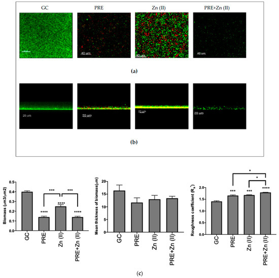 3.4. Biofilm Inhibition and Eradication Activity of PRE, Zn (II) and PRE/Zn (II) in Combination