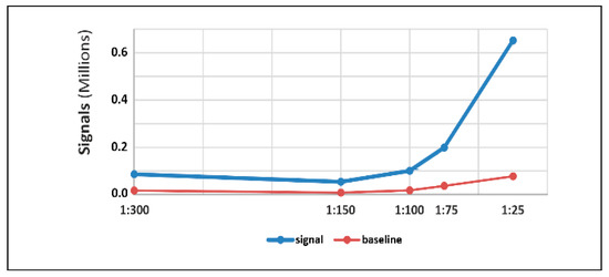 Optimization of anti-β-actin antibodies dilution on capillary western blot: Different dilutions of anti-β-actin (1:25; 1:75; 1:100; 1:150 and 1:300) were used on 0.5 mm2 LCM section of rat kidney. Signal and baseline, the area under the curve was analyzed to select the best dilution of anti-β-actin antibodies. Dilution 1:75 was selected and used for further experiments.