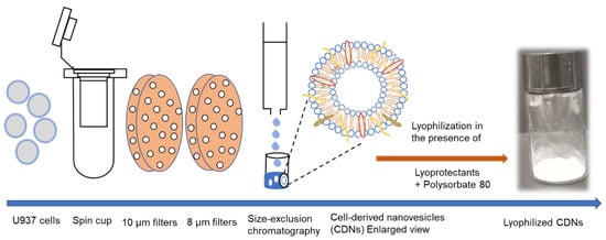 Therefore, the aim of this study was to assess the effect of the lyophilization process on the biomolecular structure properties of CDNs, as well as on their morphology and biological activity. Towards this goal, CDNs were produced from U937 monocytic cells as the CDNs from these immune cells were reported to have intrinsic targeting capability towards inflammation [