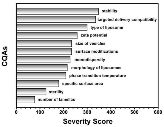 List of the Critical Quality Attributes (CQAs) of the liposomes ranked by their calculated severity scores.
