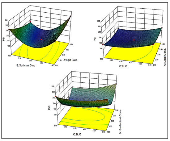 3.4. Effect of Independent Variables on Particle Size (Y1)