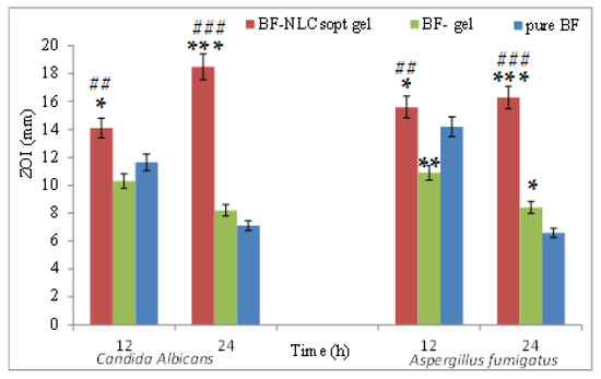 Chicago/Turabian StyleMahdi, Wael A., Sarah I. Bukhari, Syed Sarim Imam, Sultan Alshehri, Ameeduzzafar Zafar, and Mohd Yasir. 2021. "Formulation and Optimization of Butenafine-Loaded Topical Nano Lipid Carrier-Based Gel: Characterization, Irritation Study, and Anti-Fungal Activity" Pharmaceutics 13, no. 7: 1087. https://doi.org/10.3390/pharmaceutics13071087