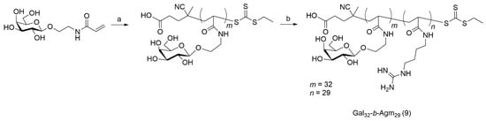 2.9. Synthesis of Gal32-b-Agm29 Cationic Diblock Copolymer (9)