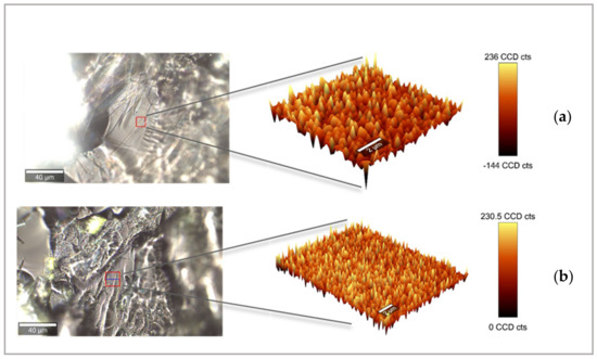 Raman 3D mapping for: (a) M 50 printlet with an area of 10 × 10 microns, and (b) M 35 Span printlet with an area of 15 × 15 microns.