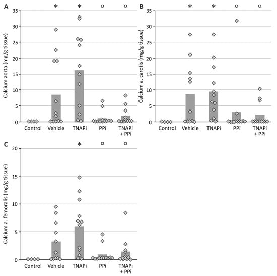 3.2. Exposure to PPi, but Not TNAP Inhibition, Prevented the Development of Arterial Media Calcification