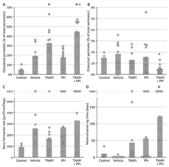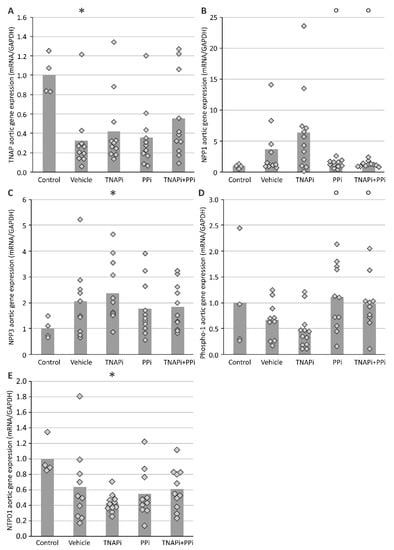 | Parameter | Control | Vehicle | TNAPi | PPi | TNAPi + PPi |