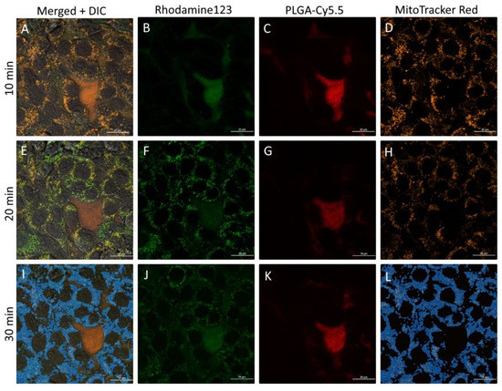 The PLGA-Cy5.5 nanoparticles were produced using different ratios of pre-modified PLGA-Cy5.5 polymer and the original polymer while keeping the total polymer amount constant. The presence of the modified polymer did not exert any influence on the nanoparticles’ basic parameters: the average size of all PLGA-Cy5.5 nanoparticles was about 120 nm (PDI < 0.2), with a zeta potential of around −22 mV (Table S2).