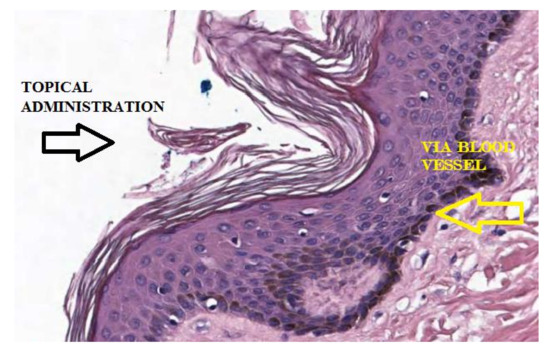 The physiological distribution of AA in the skin from the plasma occurs via a flow of nutrients from the blood vessels in the dermis to the epidermal layer (Figure 3).