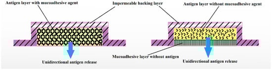 Possible designs of multilayered vaccine comprised buccal film with different functions for unidirectional release of antigen.