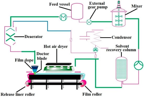 Flow chart illustrating the various processes typically involved in buccal film manufacturing based on solvent casting technique.